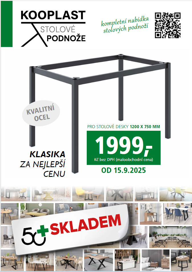 Nově se na sortiment stolových podnoží vztahuje standardní obchodní sleva, stejně jako na ostatní produkty z naší nabídky.
